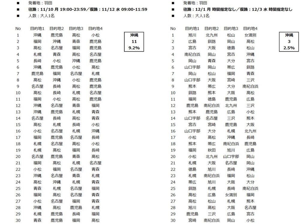 一定需要のありそうな”那覇”に設定(ビジネス路線で需要が高いと思われる伊丹、新千歳、福岡は外す)