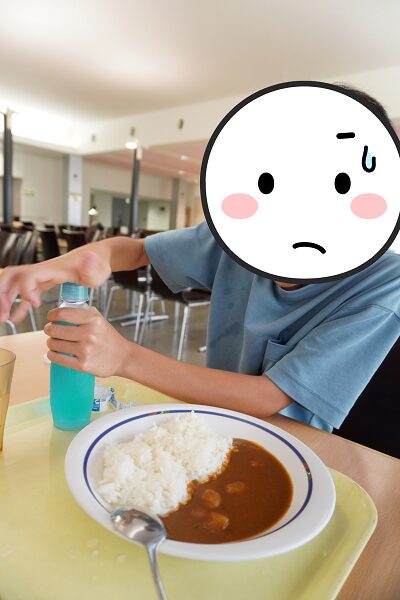 ビュッフェスタイルを楽しんでいる子供たちが選んだのはカレーとラムネ。